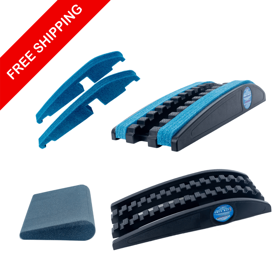 True Back® is a “non-powered orthopedic traction device” designed to relieve back pain, stress, tension and improve posture. True Back® is totally portable, being only two feet long and weighing about two pounds. The new True Back® is adjustable, with the foam infills in place the traction and mobilization pressure is more mild. Remove the infills and the traction effect increases. True Back is the best self-traction device for a painless, flexible spine; and was designed to stretch and mobilize the individual vertebral segments in a way somewhat similar to a subtle chiropractic adjustment, thereby relieving pain and improving posture.